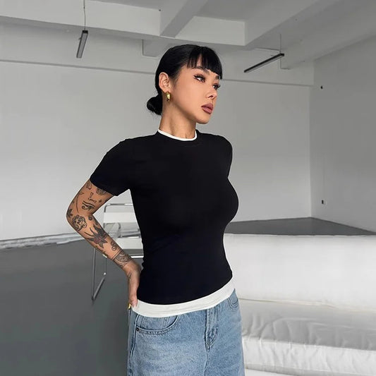 ¥3,691セール価格¥4,990 お得 ¥-1,299 (-35%)単価につきホワイトバイカラースリムフィットTシャツ