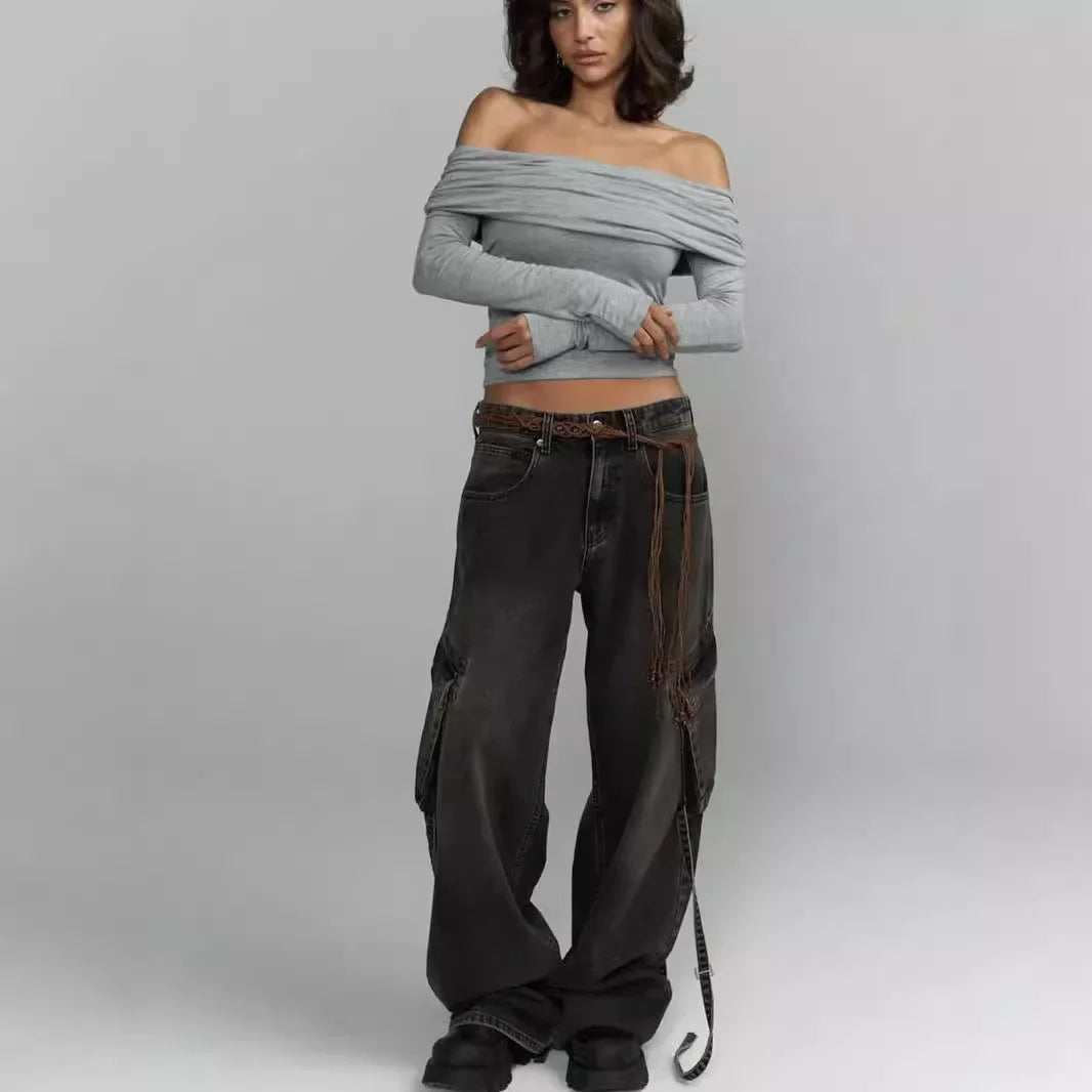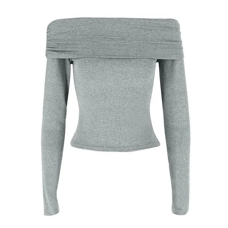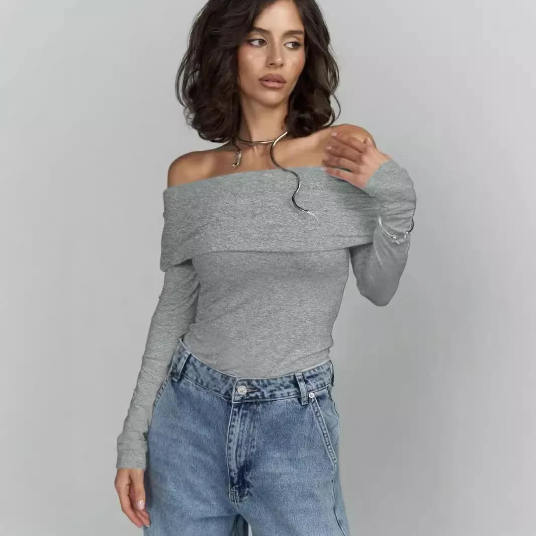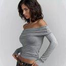 デコルテラインを綺麗にみせてくれるオフショルダーロングスリーブトップス。グレイのみ1色展開になります。海外サイズになりますので小さめを選択してください。※サイズ表の表記から1-3cm程度の誤差がある場合があります。ご了承ください。