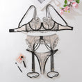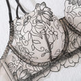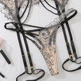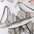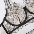 ブラック&スキンカラーの繊細フローラルの刺繍ブラとガーター、ショーツ3セット。ブラック1色展開になります。海外サイズになりますので小さめを選択してください。※サイズ表の表記から1-3cm程度の誤差がある場合があります。ご了承ください。