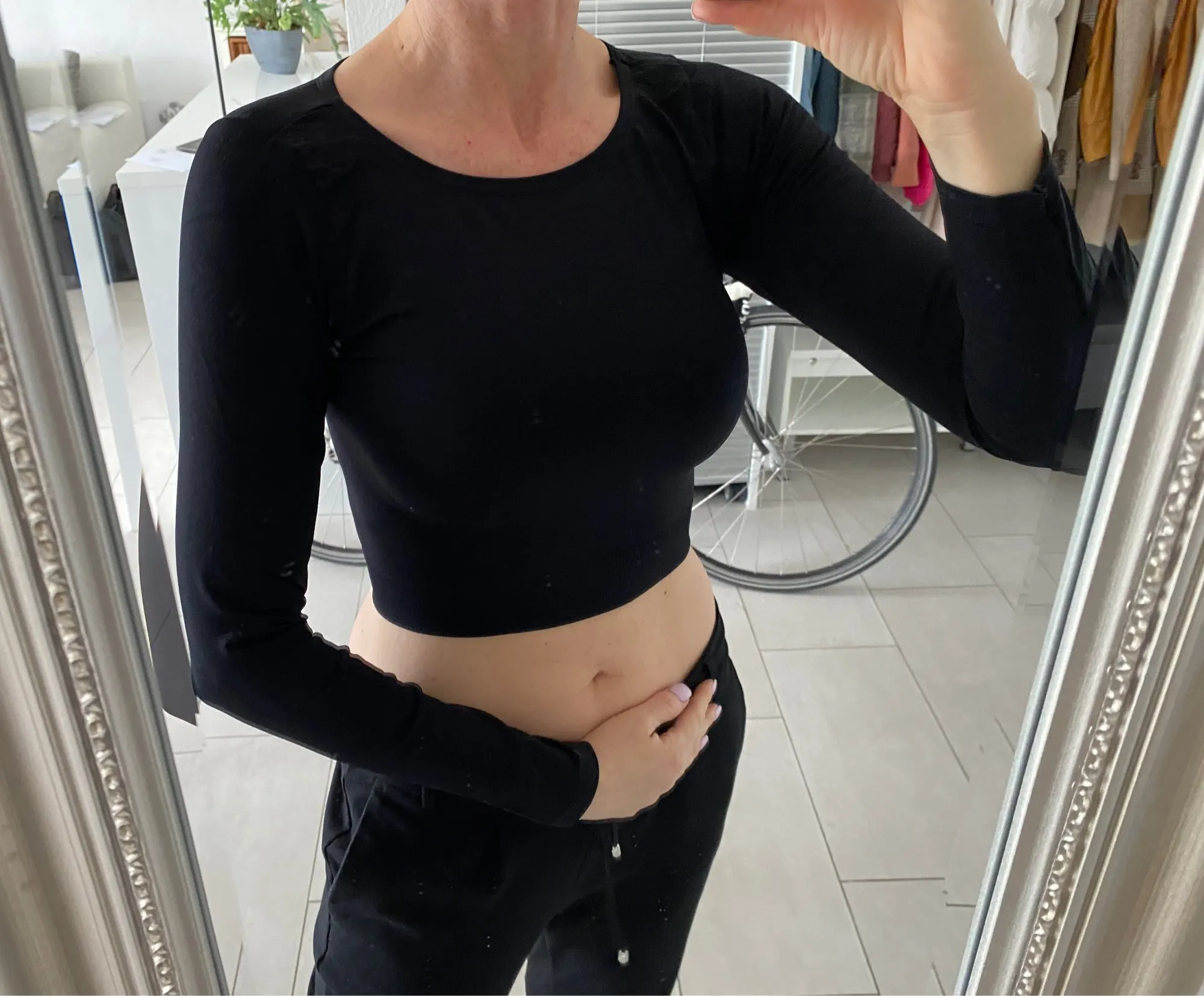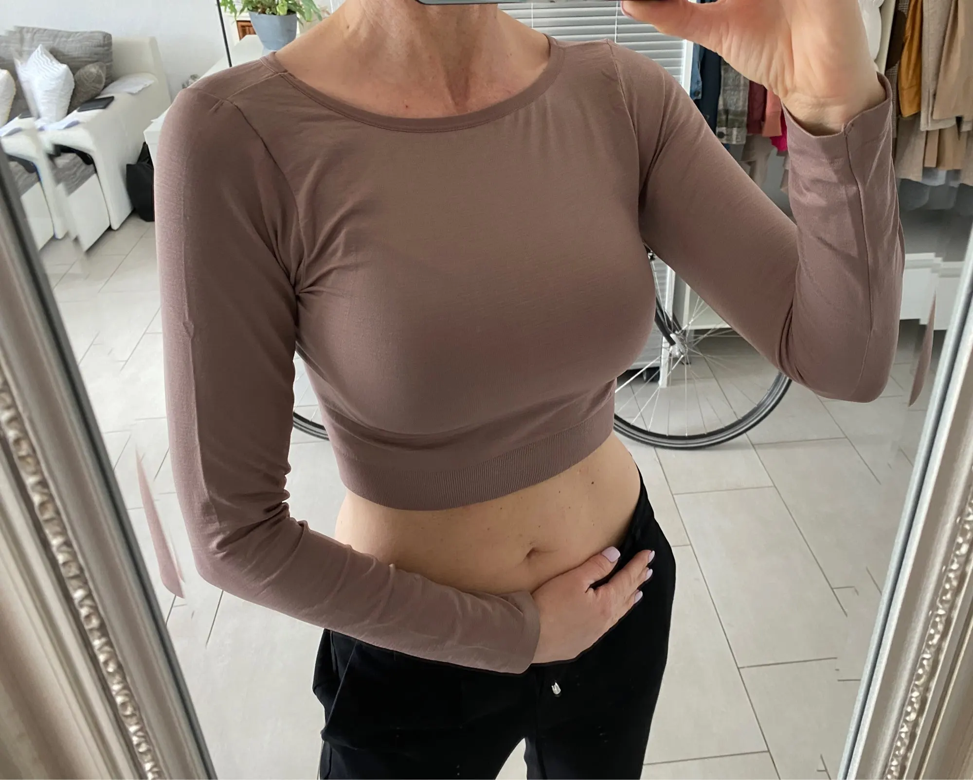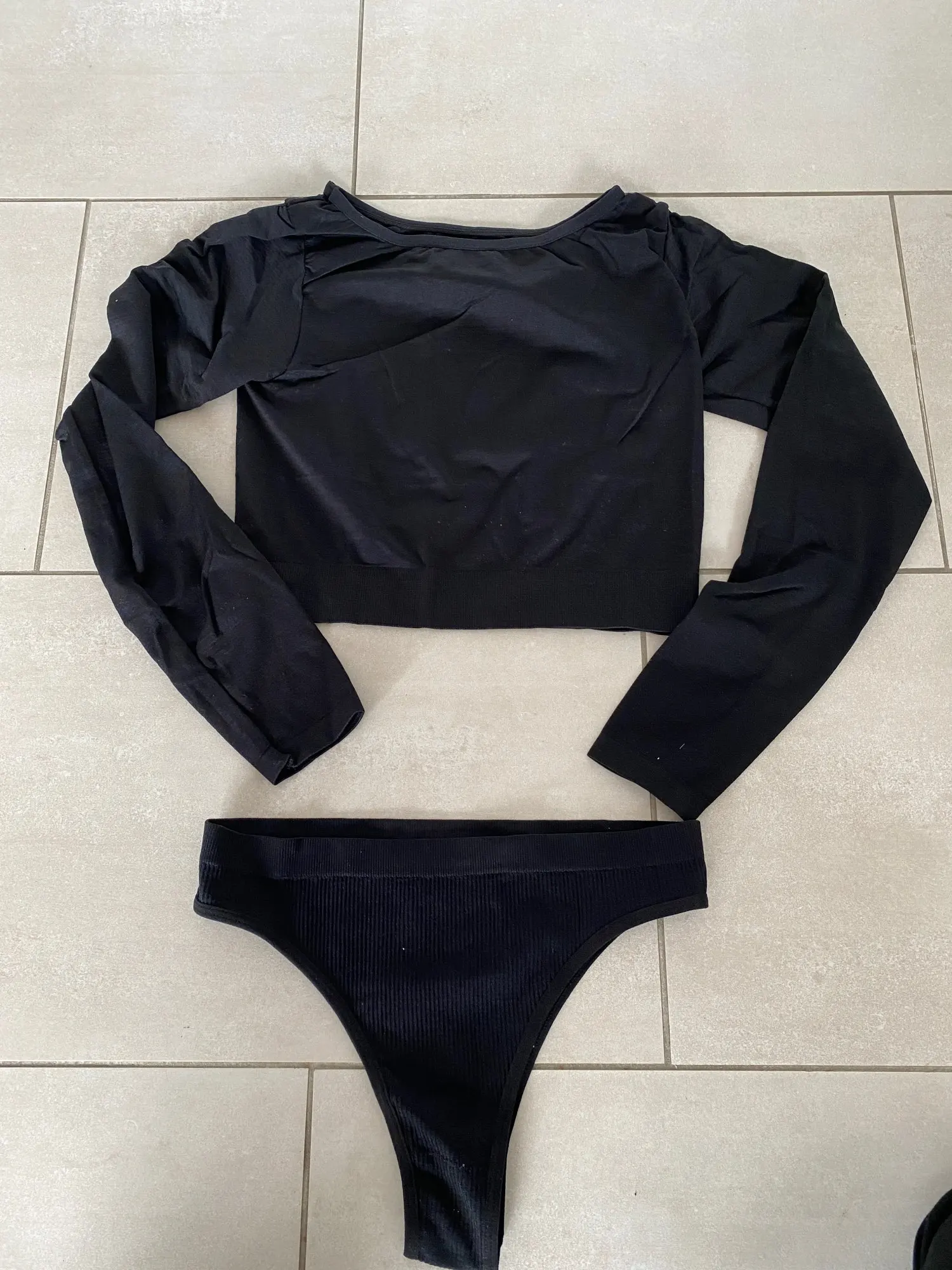 Seamless Ribbed Long Sleeve Top Low Waist Thongs Set